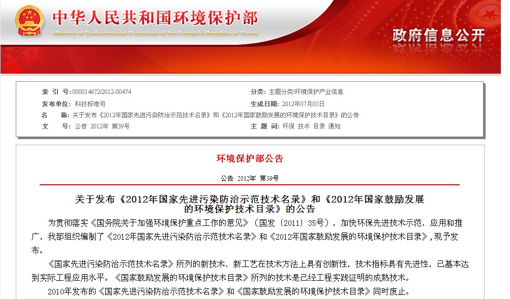 日前,環(huán)境保護(hù)部發(fā)布了《2012年國(guó)家先進(jìn)污染防治示范技術(shù)名錄》和《2012年國(guó)家鼓勵(lì)發(fā)展的環(huán)境保護(hù)技術(shù)目錄》(以下簡(jiǎn)稱《示范名錄》和《鼓勵(lì)目錄》,具體內(nèi)容詳見環(huán)境保護(hù)部公告 2012年 第39號(hào))。